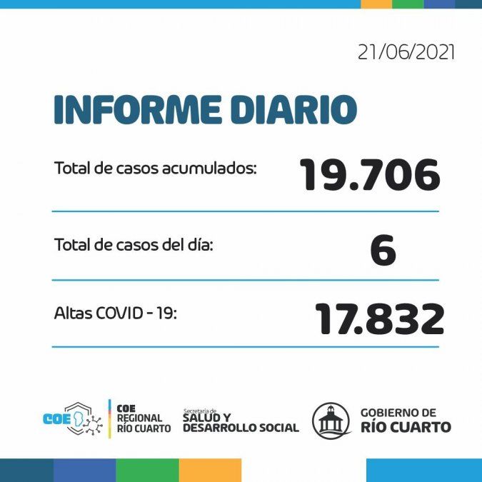 De esta manera, la provincia de Córdoba registra a la fecha un total de 844 casos nuevos y un acumulado de 385.208 casos.