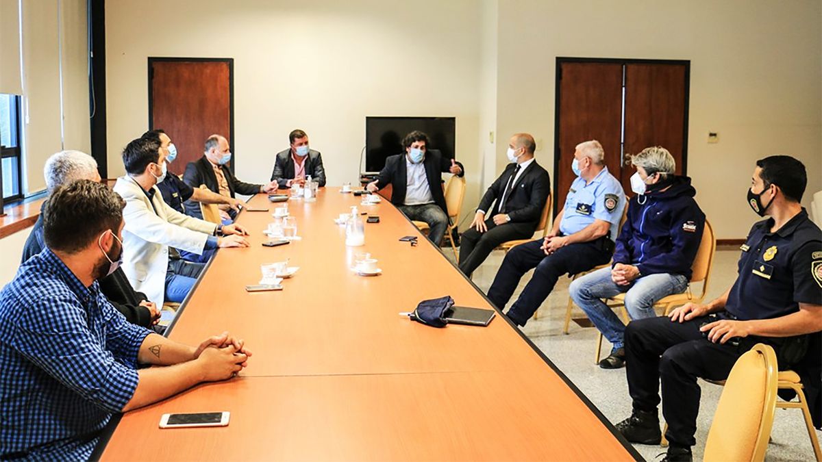 La reunión se llevó a cabo en el Centro Cívico, fue encabezada por el delegado local del Ministerio de Seguridad, Roberto Koch, y de ella participaron el subsecretario municipal Ricardo Rojas, el jefe policial Gustavo Della Mea y el fiscal Pablo Jávega, entre otros.