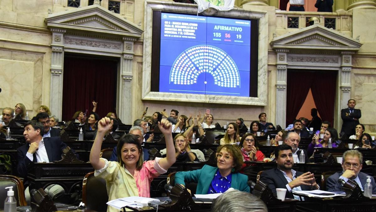 Por último, también se sancionó el proyecto por la cual se crea el marco regulatorio para el desarrollo de la industria del Cannabis Medicinal y el Cáñamo Industrial. Fue por 155 votos afirmativos, 56 negativos y 19 abstenciones.