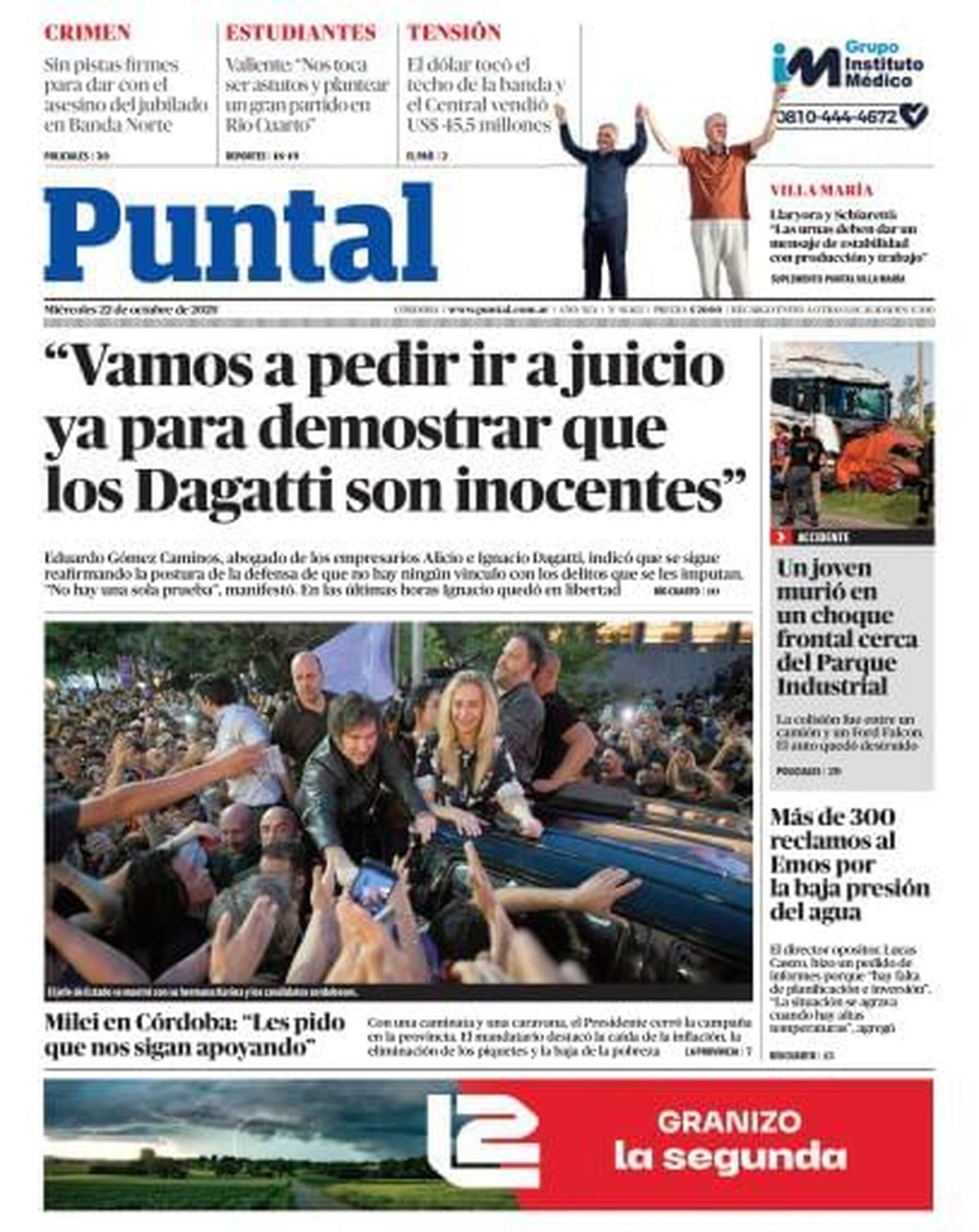 Río Cuarto | Puntal | Accedé a la edición digital de Diario Puntal Te acercamos el diario completo para que no te pierdas ninguna de nuestras notas 22 de octubre de 2025 - 08:24