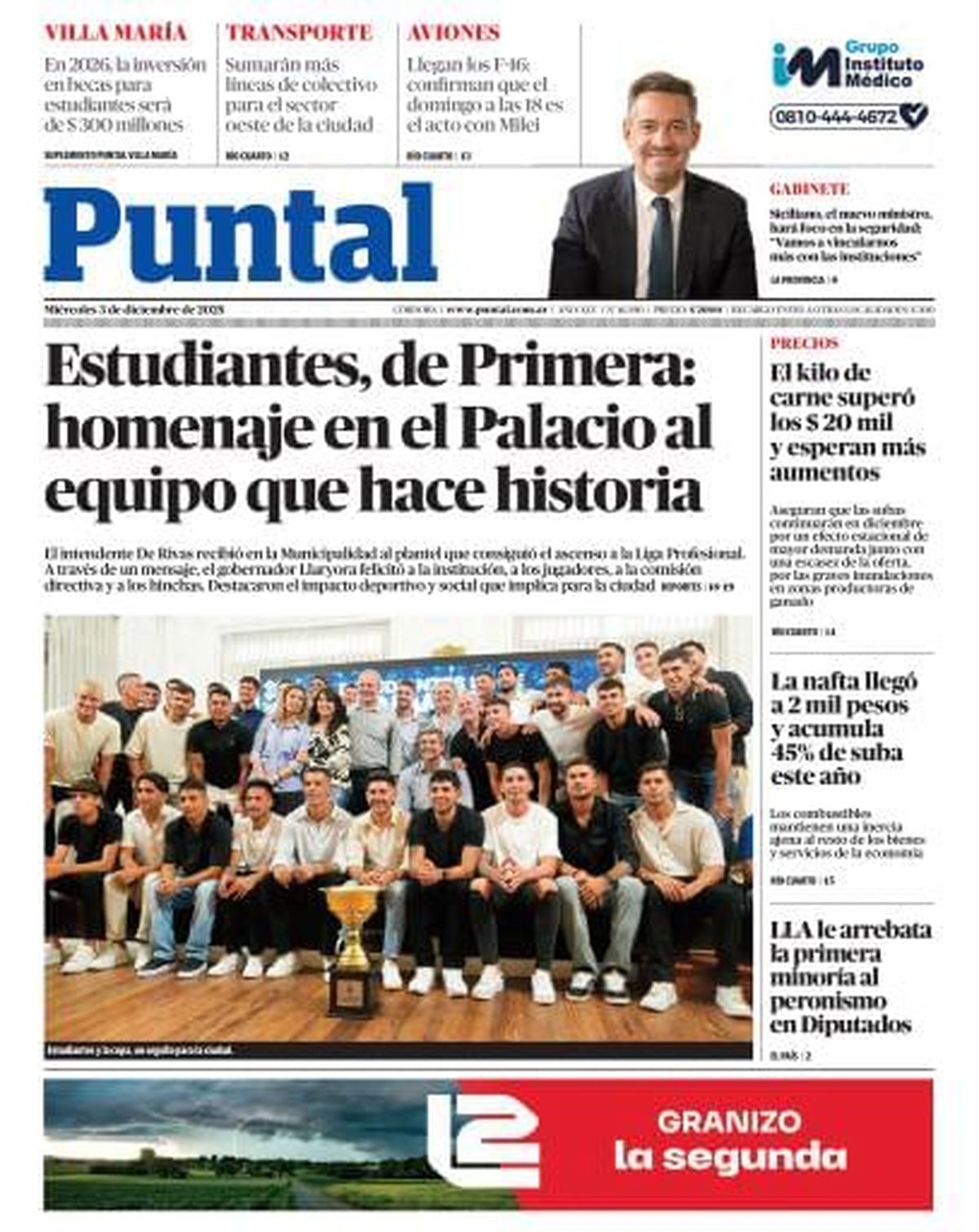 Río Cuarto | Puntal | Accedé a la edición digital de Diario Puntal Te acercamos el diario completo para que no te pierdas ninguna de nuestras notas 03 de diciembre de 2025 - 08:20