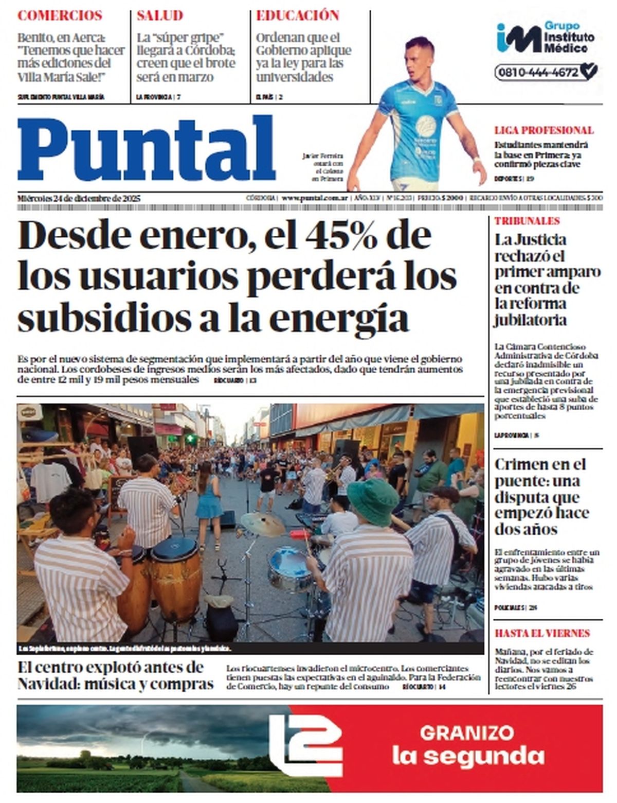Río Cuarto | Puntal | Accedé a la edición digital de Diario Puntal Te acercamos el diario completo para que no te pierdas ninguna de nuestras notas 24 de diciembre de 2025 - 08:20