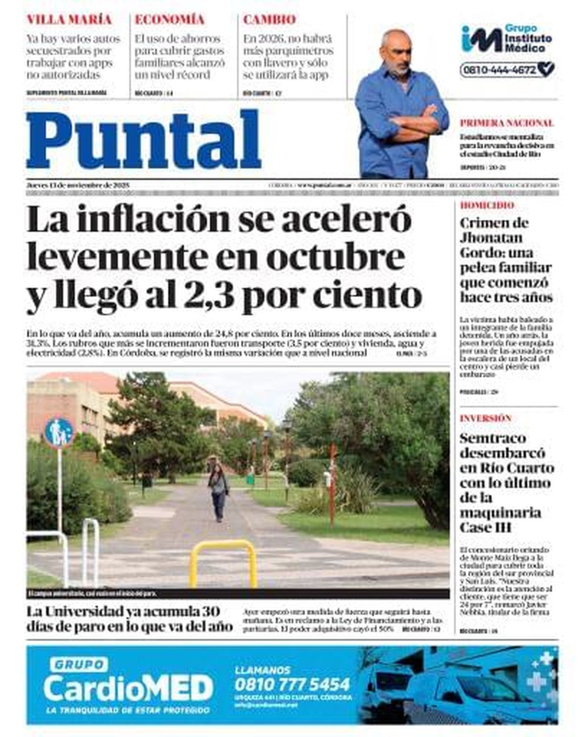 Río Cuarto | Puntal | Accedé a la edición impresa de Diario Puntal Te acercamos el diario completo para que no te pierdas ninguna de nuestras notas 13 de noviembre de 2025 - 08:11