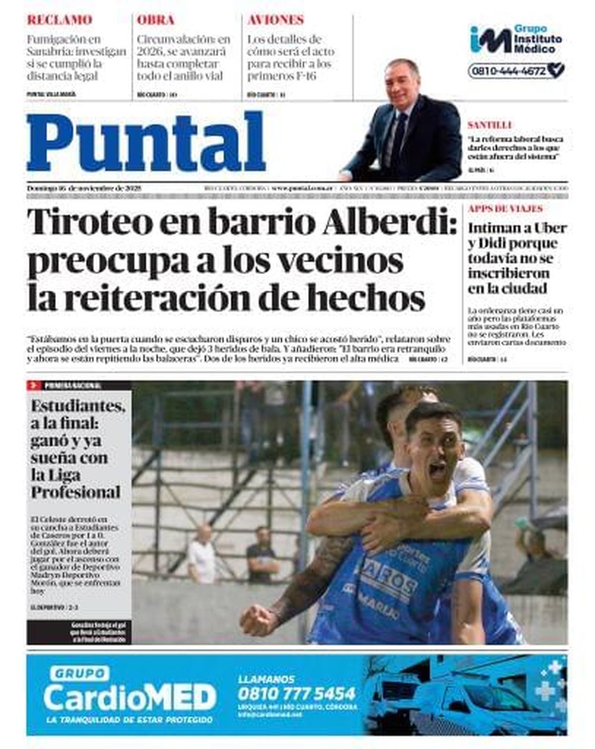 Río Cuarto | Puntal | Accedé a la edición impresa de Diario Puntal Te acercamos el diario completo para que no te pierdas ninguna de nuestras notas 16 de noviembre de 2025 - 08:38
