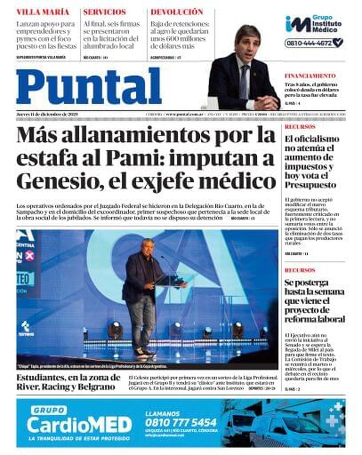 Río Cuarto | Puntal | Accedé a la edición impresa de Diario Puntal Te acercamos el diario completo para que no te pierdas ninguna de nuestras notas 11 de diciembre de 2025 - 08:44