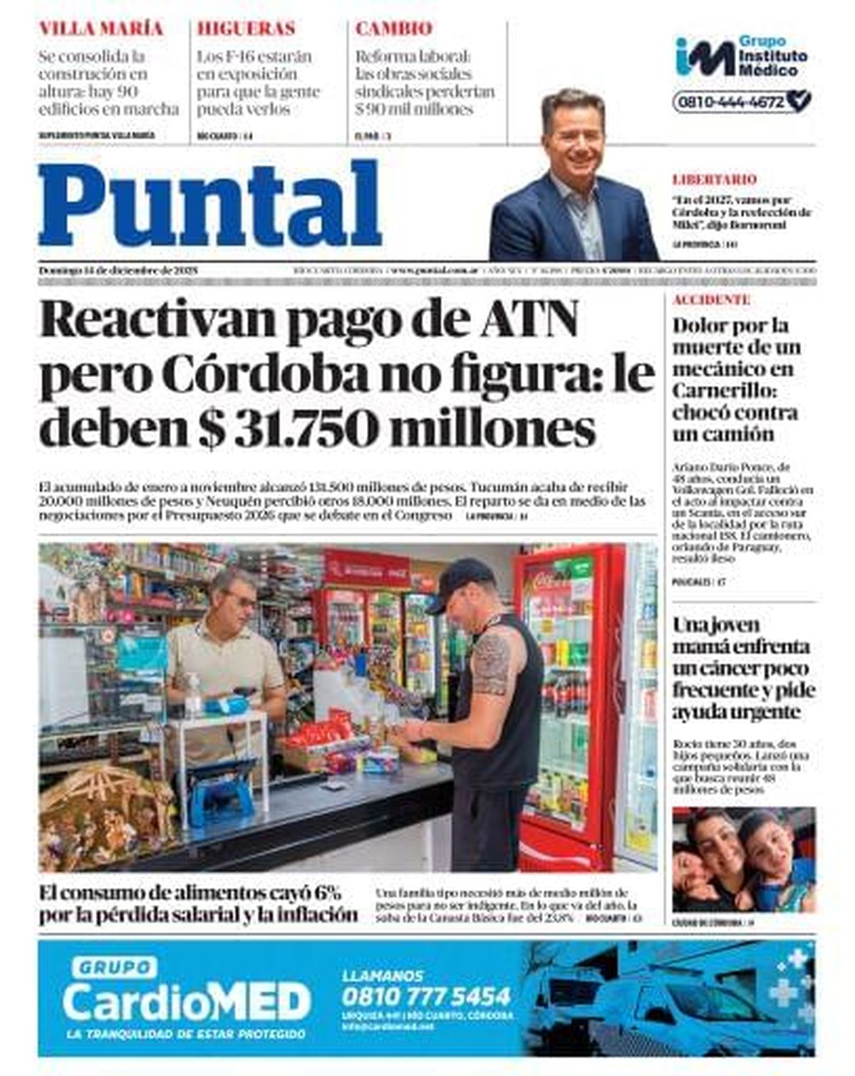 Río Cuarto | Puntal | Accedé a la edición impresa de Diario Puntal Te acercamos el diario completo para que no te pierdas ninguna de nuestras notas 14 de diciembre de 2025 - 09:01