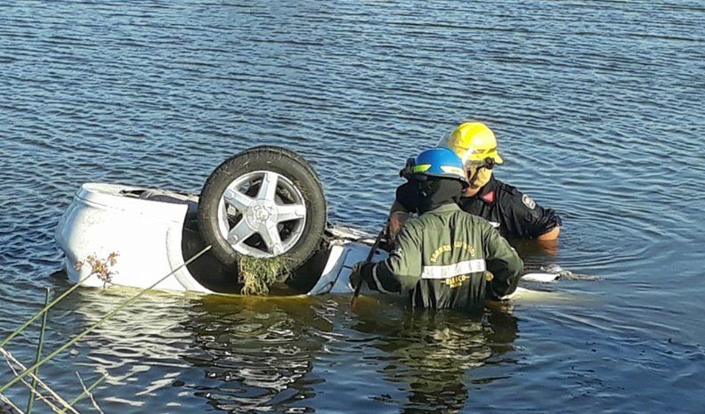 El auto, que no presentó mayores daños, fue rescatado del agua por bomberos de Realicó.