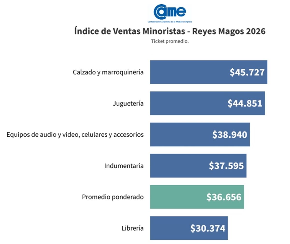 Según el informe de CAME, el ticket promedio de este año fue de $ 36.656. Al compararlo con el ticket promedio de 2025 ($ 48.081) y ajustar por la inflación interanual, el resultado muestra una caída real del 41,9%. Este comportamiento evidencia un cambio en el patrón de consumo: se vendieron más unidades, pero a un menor valor promedio por compra. En términos prácticos, el mayor dinamismo en las cantidades no se tradujo en un aumento del gasto, sino en la elección de regalos más económicos en relación con el año anterior.