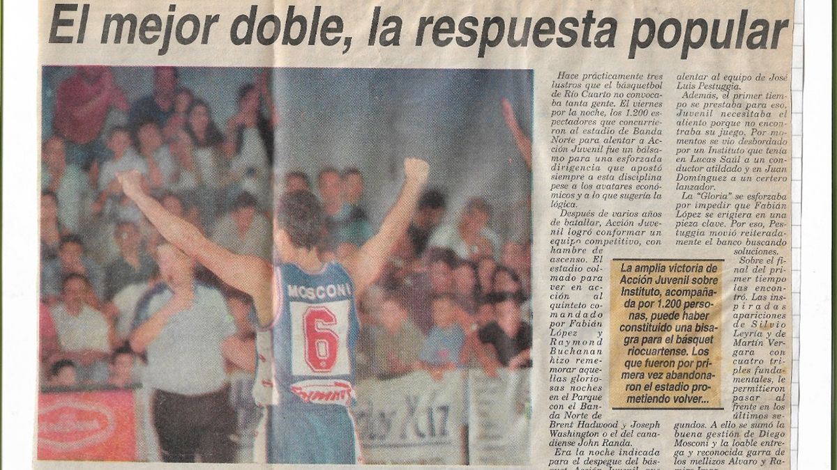 -El riocuartense suele ser un público muy futbolero, pero en ese entonces la gente se prendió con el básquet. ¿Cómo lo veía usted al acompañamiento? ¿Imaginaba que se iba a dar algo así?