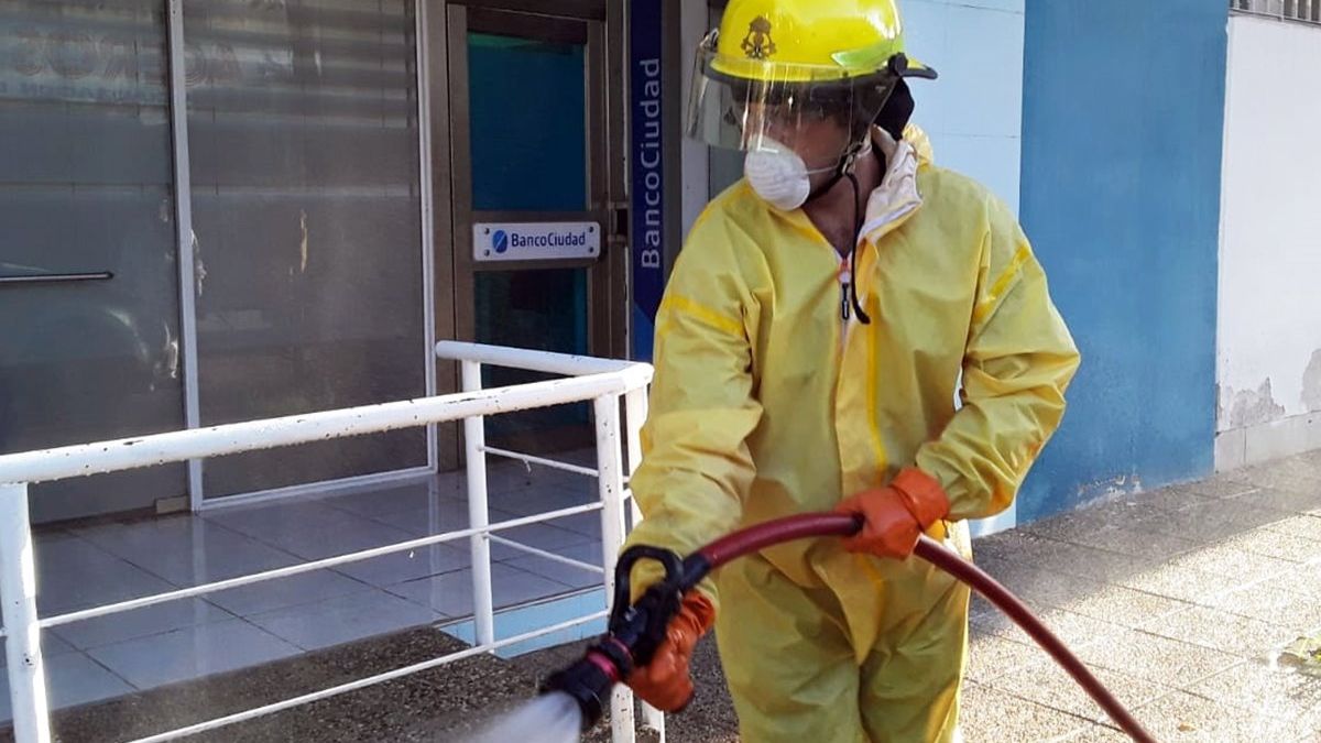 Desde las 5.15 de la madrugada se producirán desinfecciones por parte de Bomberos Voluntarios y Defensa Civil en las entidades bancarias indicadas.