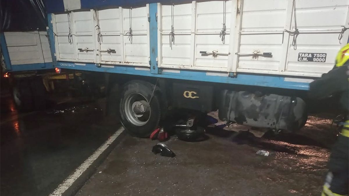 Según trascendió, el camión transitaba por la ruta de norte a sur y habría girado hacia Moreno, momento en el que la moto lo embistió en uno de los laterales.