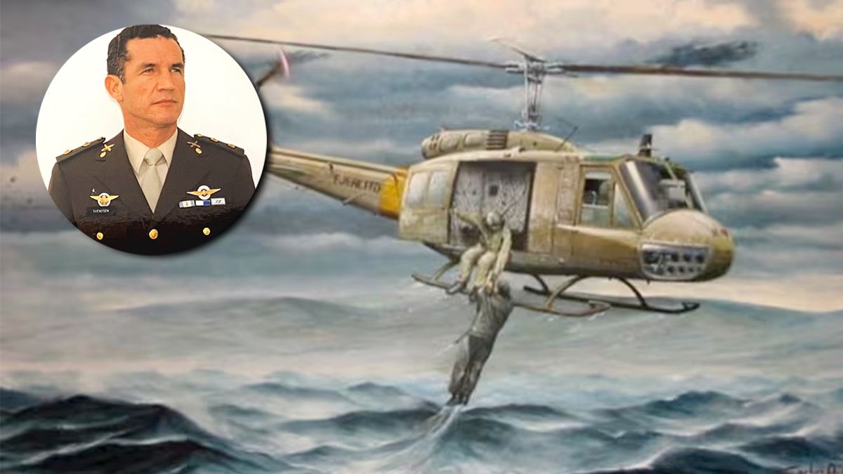 El mar estaba a 5 grados. El aviador Arca se había eyectado de su avión, pero su paracaídas se desprendió tarde, se enredó y tragó mucha agua de mar. Intentaba sobrevivir cuando de repente apareció el helicóptero de Svendsen, el piloto con más horas de vuelo en la Guerra del Atlántico Sur.