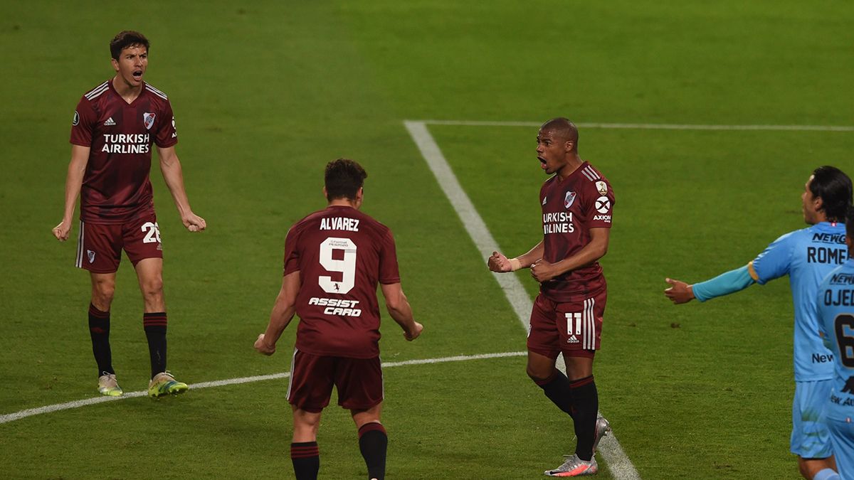 River Plate golea al cabo del primer tiempo a Binacional, en el estadio Nacional de Lima, por 3 a 0, al cabo del primer tiempo de este encuentro correspondiente a la cuarta fecha del Grupo D de la Copa Libertadores, con goles convertidos cada 10 minutos por Nicolás De la Cruz a los 15, John Fajardo en contra a los 25 y Julián Álvarez a los 35.