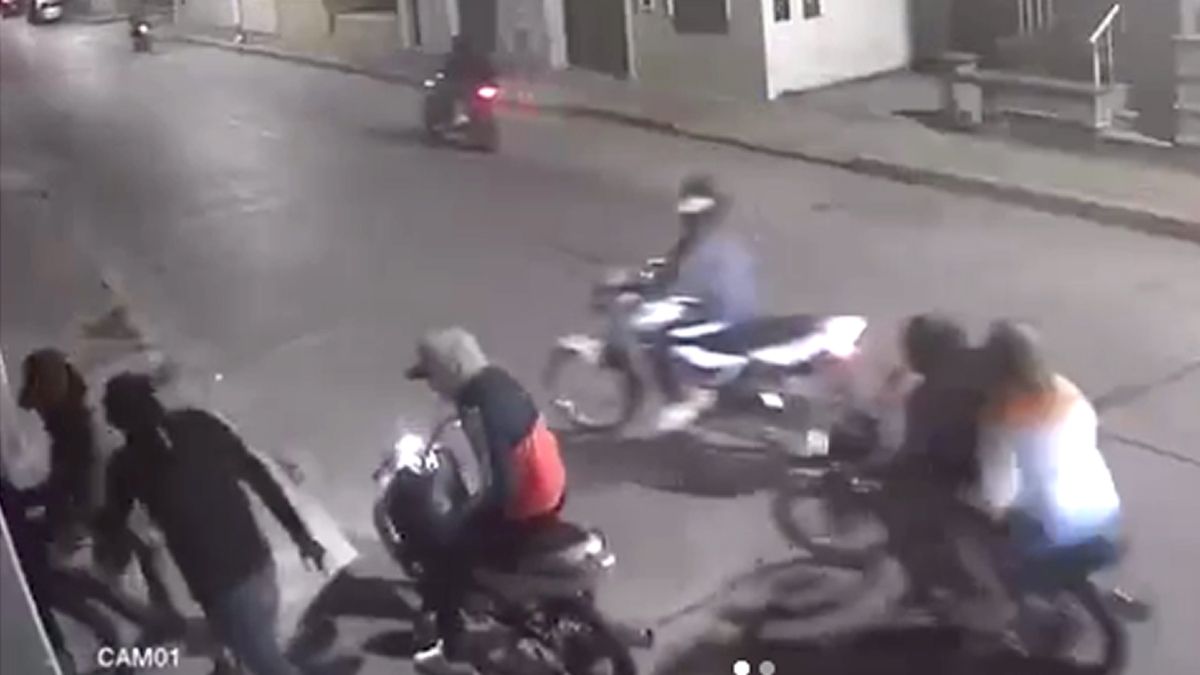 El robo bajo la modalidad piraña fue captado por las cámaras de una vivienda ubicada en las inmediaciones, donde se observa que el joven fue amenazado por unos tres o cuatro delincuentes, mientras otro grupo los aguardaba en las motos para emprender la huida.