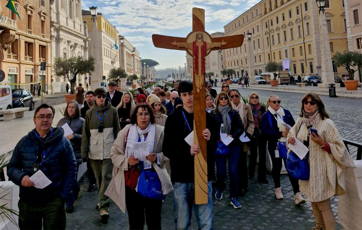 “Acá estamos un grupo de peregrinos, 35 de Peregrinaciones Riviera. Somos de diferentes partes del país. Estamos junto con el padre Fernando Gómez, de nuestra Diócesis de Río Cuarto y después de pasar por España y Medjugorje, estamos en Roma y por supuesto que nuestro objetivo principal es vivir el Jubileo”, dijo a Puntal Reynot Blanco.