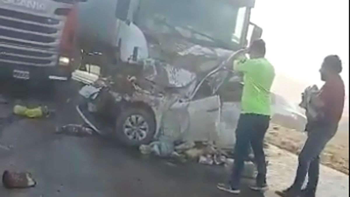 Al menos cinco vehículos, entre camiones y automóviles, están involucrados en la colisión.