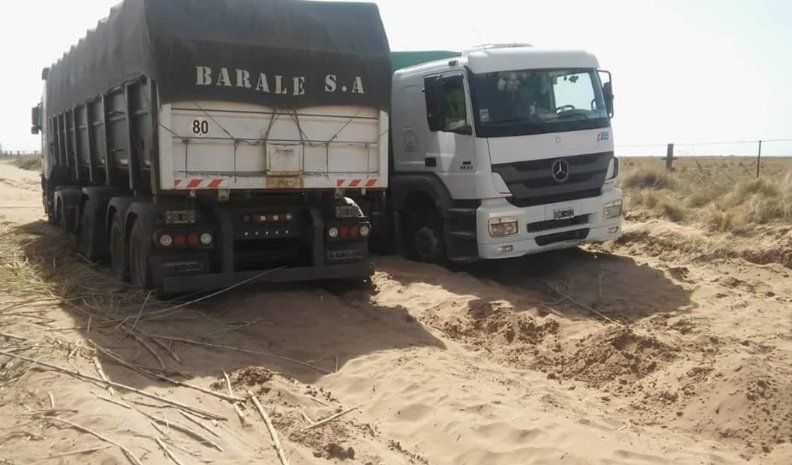 La vecina, visiblemente preocupada, agregó que un comisionista de Justo Daract pudo pasar a duras penas por un costado donde varios camiones se encontraban enterrados hasta la mitad.