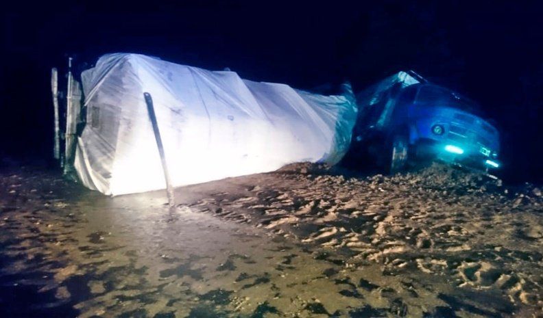 Alrededor de las 4.20, en el kilómetro 50 de la ruta provincial Nº 30, se registró el vuelco de un camión Mercedes Benz 1114 con acoplado cargado con hojas de menta. La unidad era conducida por un ciudadano de 35 años, acompañado por otro de 27, ambos oriundos de Villa Dolores cuando circulaban de oeste a este.