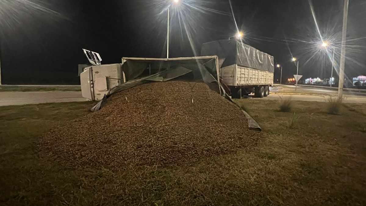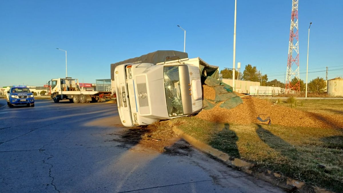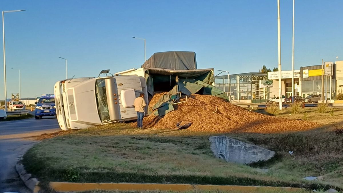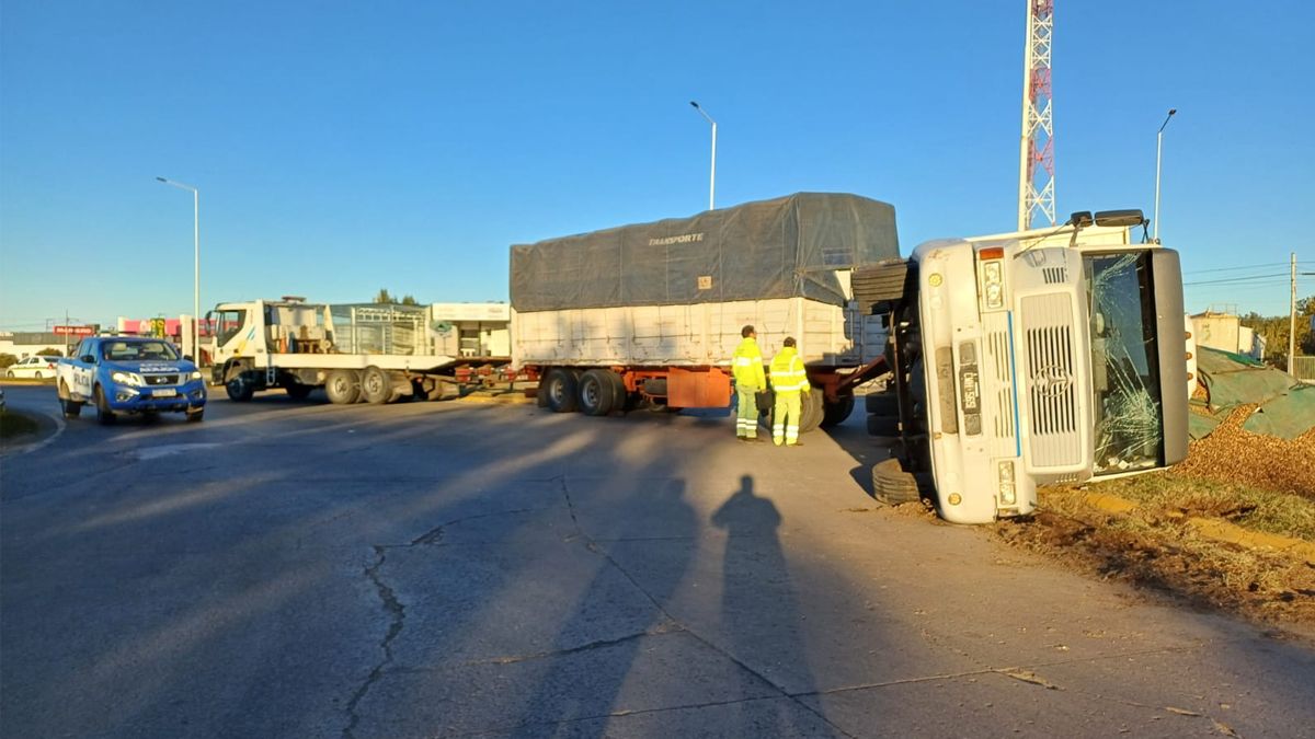 La Policía informó sobre el vuelco de un camión Mercedes Benz con acoplado cargado con maní en la Ruta Provincial A005, específicamente en la rotonda Castelli, a las 00:00 horas de este viernes. El vehículo era conducido por un ciudadano de 23 años, quien afortunadamente resultó ileso.