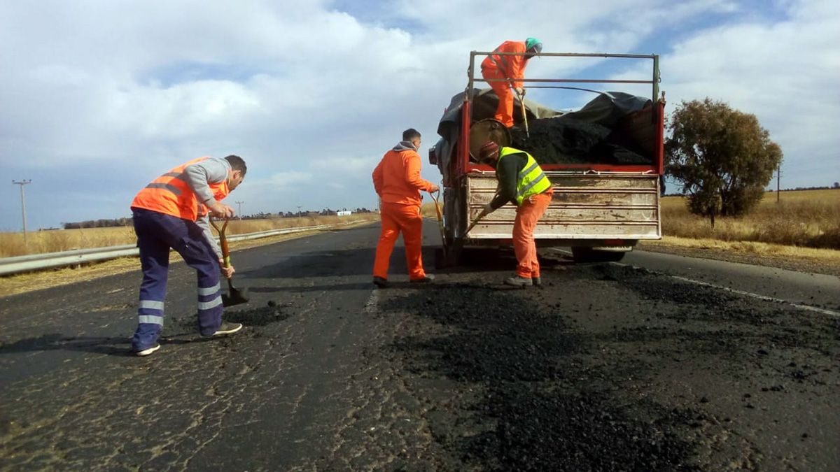 Ayer, un grupo de operarios trabajaba en el kilómetro 271 de esta vía internacional, avanzando hacia la ciudad de Río Cuarto. Se trata de la colocación de material para el taponamiento de los baches que se observan sobre la carpeta asfáltica.