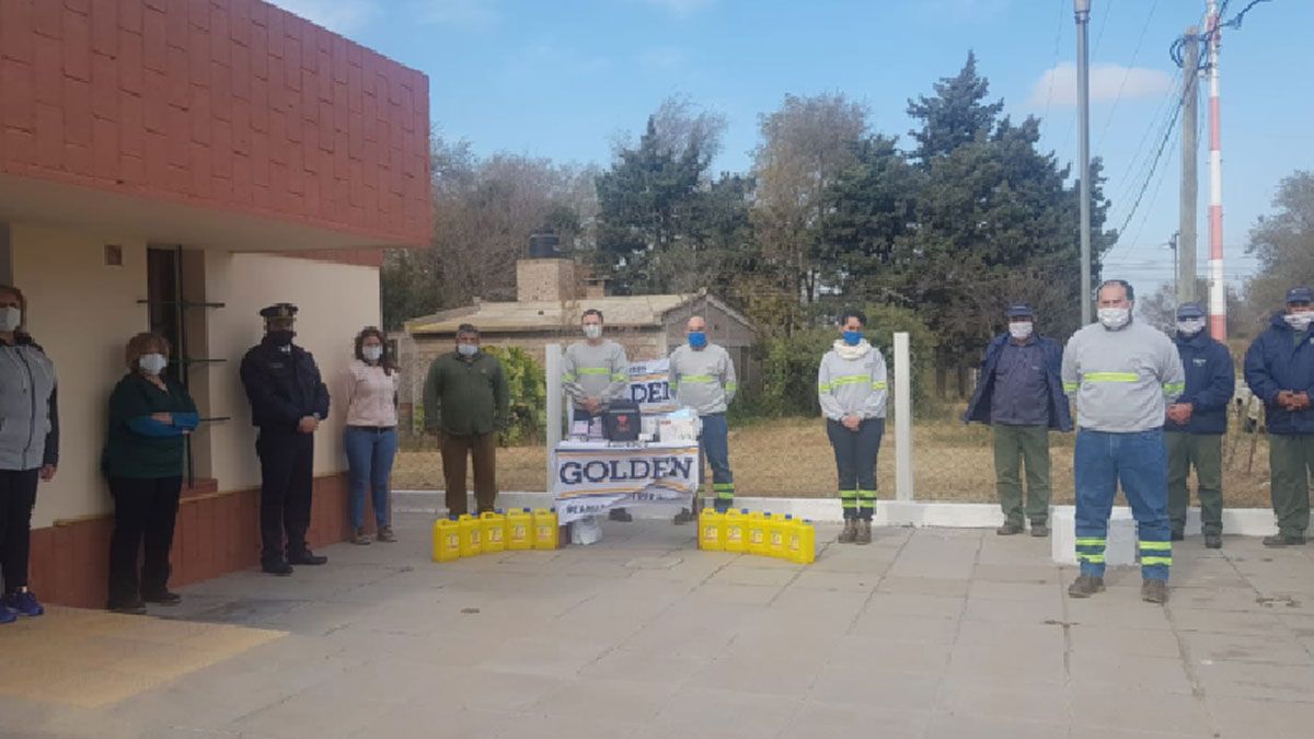 A través de sus representantes regionales, la firma Golden Peanut and Tree Nuts hizo entrega al jefe comunal, Luis Poloni, de un desfibrilador portátil automático, dos nebulizadores a pistón, un oxímetro, un termómetro láser a distancia, además de 10 bidones de lavandina, 100 barbijos quirúrgicos, cinco cajas (100 unidades cada una) de guantes de nitrilo y 15 batas descartables. Todos estos elementos permitirán dotar al centro de salud local de elementos básicos para la atención de pacientes y, en cuanto a la aparatología, brindar asistencia inmediata en casos de emergencia.