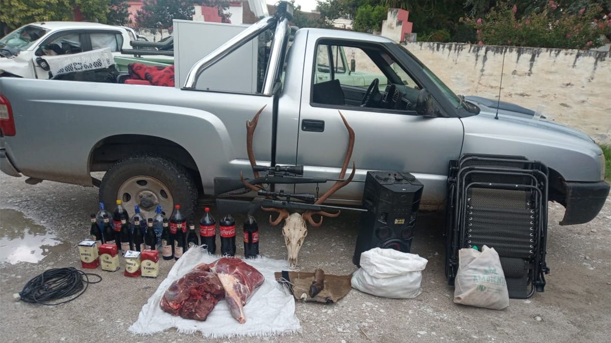Circulaban en una Chevrolet S-10 cuando fueron interceptados el domingo a la tarde por efectivos de la Patrulla Rural Sur que desarrollaban un operativo de saturación en la zona. En el procedimiento les incautaron un fusil calibre 7.32 con mira telescópica, una carabina, un freezer que contenía carne de ciervo y una cabeza de ciervo, además de la camioneta en la que se desplazaban.