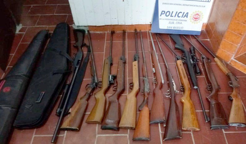 La Unidad Departamental confirmó el hallazgo de cinco escopetas -una doble caño-, un rifle de aire comprimido y dos carabinas, una de ellas con mira.