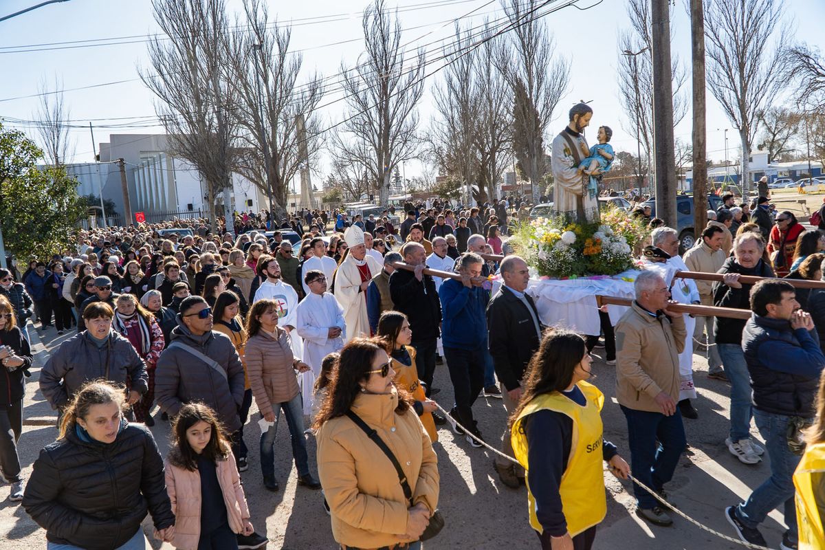 En la procesión, la imagen de San Cayetano fue transportada junto a la de la Virgen, la del Cura Brochero y la de Mama Antula.
