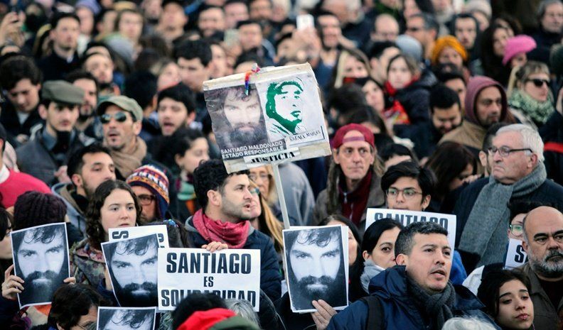 A un año de la desaparición de Santiago Maldonado, familiares del joven artesano y organismos de derechos humanos encabezaron hoy una multitudinaria movilización a la Plaza de Mayo y volvieron a responsabilizar al Estado por la muerte.