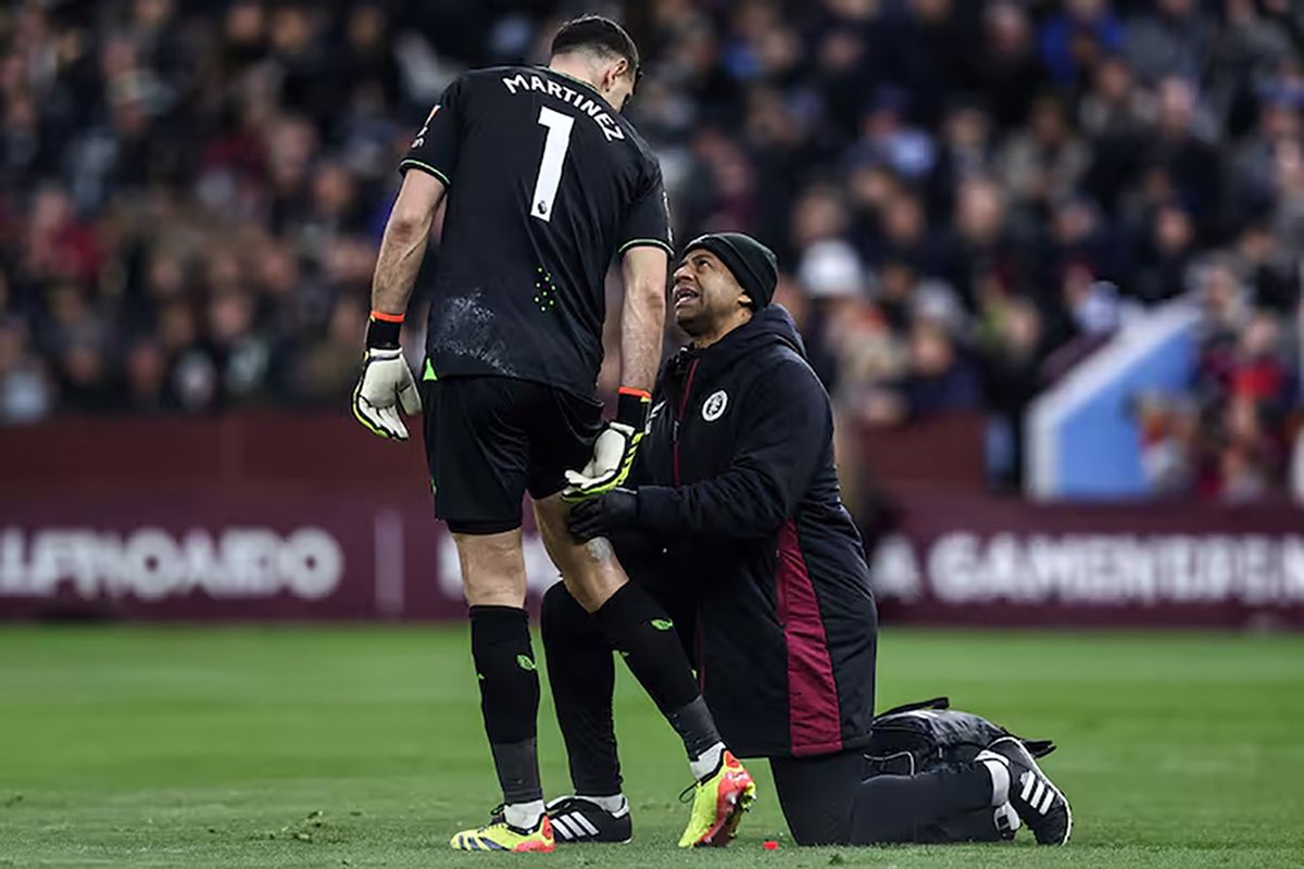 Cuando promediaba el primer tiempo el arquero del Aston Villa pidió asistencia médica para que le masajearan la zona del muslo en su pierna derecha.