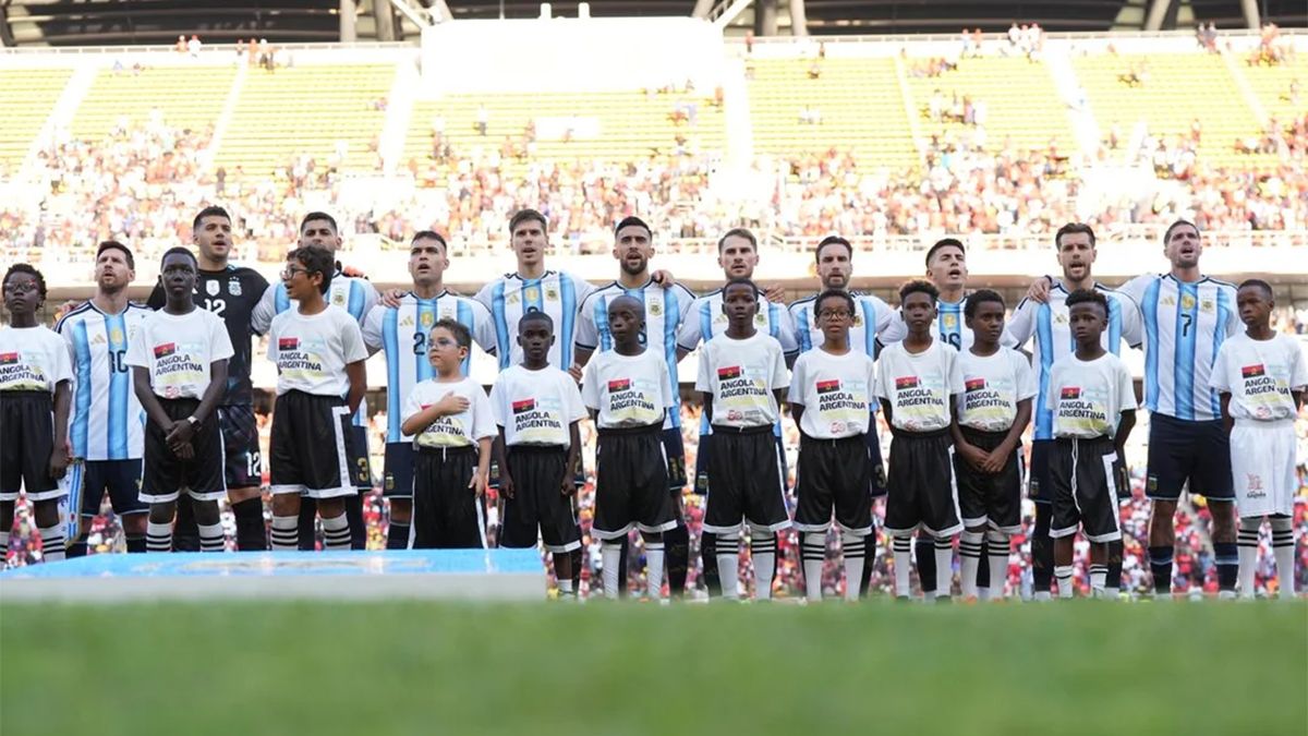 Cambios en el segundo tiempo: en el inicio, Neblú por Marques (ANG); 15m Kevin Mac Allister por Lo Celso (ARG); 22m Núrio Fortuna por Banza (ANG); 25m Emiliano Buendía por Almada (ARG); 32m Mabululu por Nzola (ANG); 40m Máximo Perrone por A. Mac Allister (ARG); José López por L. Martínez (ARG); Joaquín Panichelli por Messi (ARG); Gianluca Prestianni por N. González (ARG).