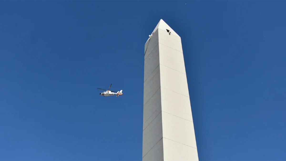 "El helicóptero guía de la Policía Federal Argentina H16 lleva a bordo al Capitán Lionel Messi, Lionel Scaloni y Rodrigo De Paul, quienes llevan la Copa del Mundo. Los mismos harán un sobrevuelo por el Obelisco, zona de Constitución, 9 de Julio, Av. De Mayo, Autopista 25 de Mayo para saludar al pueblo, donde finalmente regresarán al predio de la AFA", informó la fuerza de seguridad.