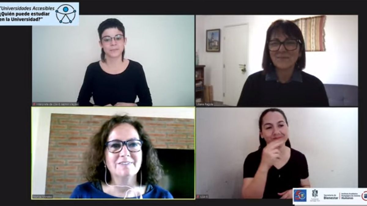 Del encuentro virtual participaron como disertantes Marisa Morales, integrante de la Comisión de Atención a Personas con Discapacidad de la Universidad Nacional de Río Cuarto (UNRC); Liliana Pagola, coordinadora del Área de Accesibilidad de la Universidad Nacional de Villa María (UNVM); y Verónica Pipino, presidenta de la Fundación Santiago Yuni.