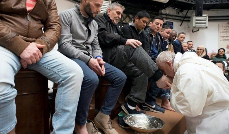 El papa Francisco, conmovido por el universo carcelario, celebró una vez más una misa del Jueves Santo en una prisión lavando los pies de doce presos, entre ellos dos musulmanes, un ortodoxo y un budista.