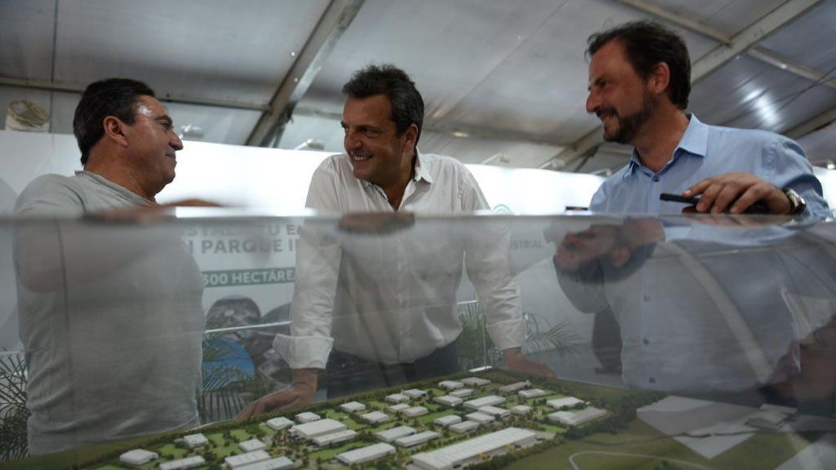 Massa visitó la exposición junto al intendente local, Ariel Sujarchuk, y al presidente del Concejo Deliberante local, Luis Carranza.