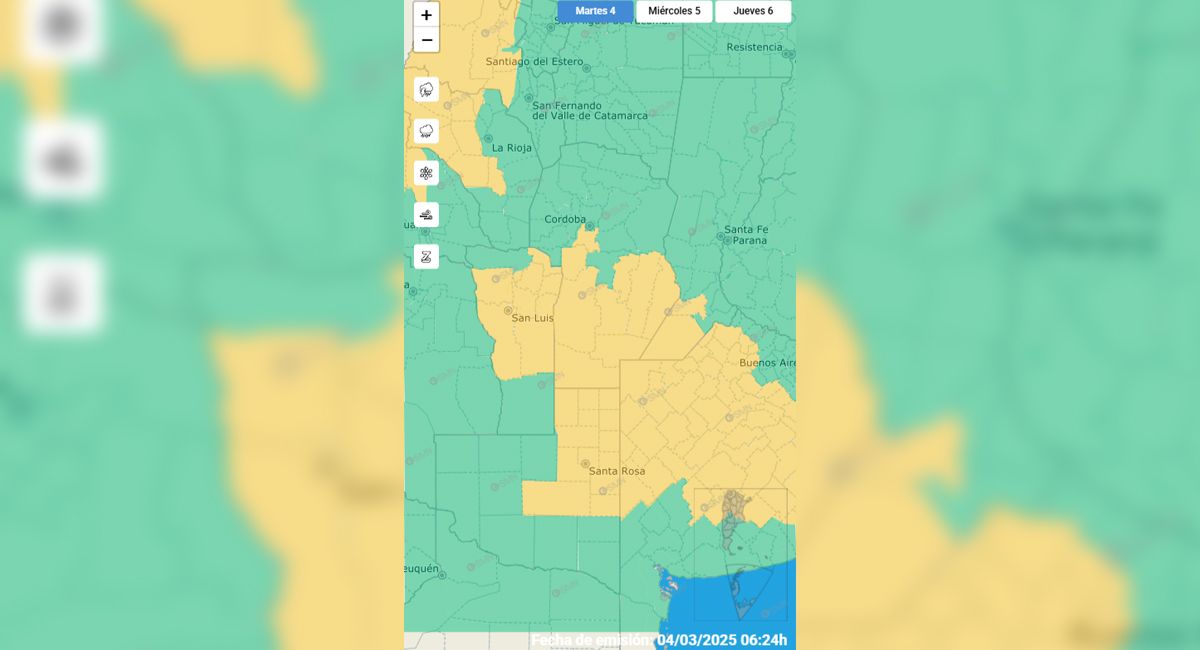 El Servicio Meteorológico Nacional renovó el alerta amarilla por tormentas para Río Cuarto y el centro-sur de la provincia de Córdoba.