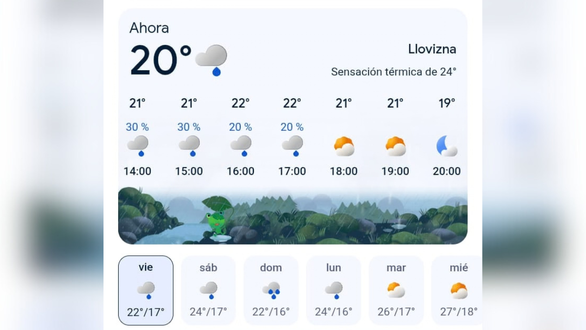 Según anticipan, la jornada iniciará con nubosidad en aumento. Se prevén tormentas aisladas hacia la tarde-noche, con una probabilidad de precipitación que oscila entre el 40% y el 70%. Las temperaturas se mantendrán en un rango agradable, con una máxima estimada de 26°C.