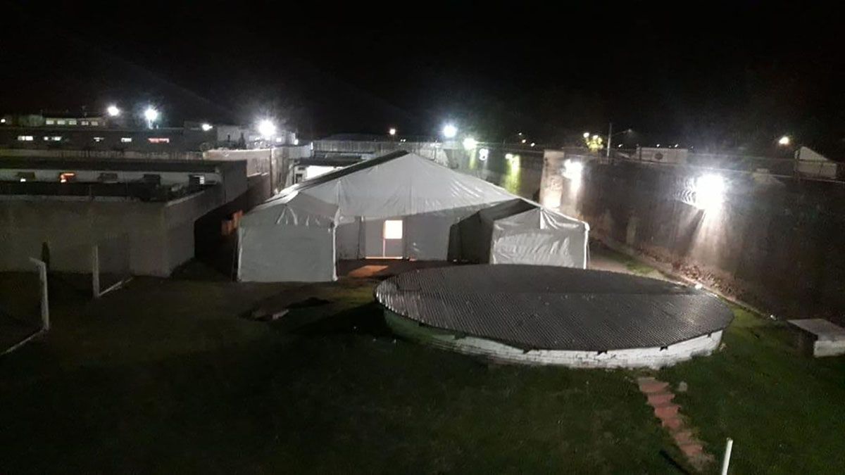 Dentro de los protocolos que se fijaron para prevenir una expansión de casos en los pabellones, una de las principales acciones fue la instalación de la enorme carpa que fue ubicada dentro del predio del edificio de la Avenida Sabattini al 2700.