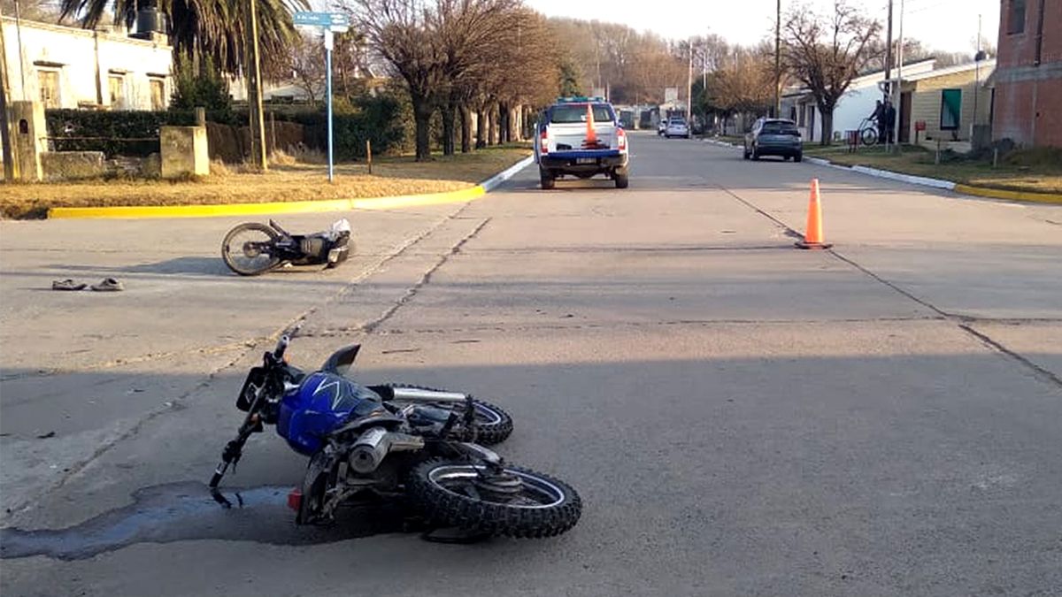 El siniestro vial se registró alrededor de las 11 en la esquina de Belgrano y 9 de Julio, cuando por causas que se tratan establecer se produjo el choque entre una motocicleta Honda Wave 110 centímetros cúbicos, al mando de un hombre de 20 años, y una Yamaha XTZ 225, que era conducida por un hombre de 42 años.