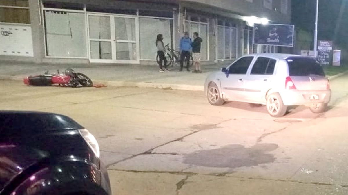 Por causas que se tratan de establecer, alrededor de las 22.30 hs. del miércoles se produjo en la esquina de Sarmiento y Rawson la colisión una motocicleta Yamaha YBR de 125 centímetros cúbicos y un automóvil Renault Clío, que era conducido por un vecino de 40 años.