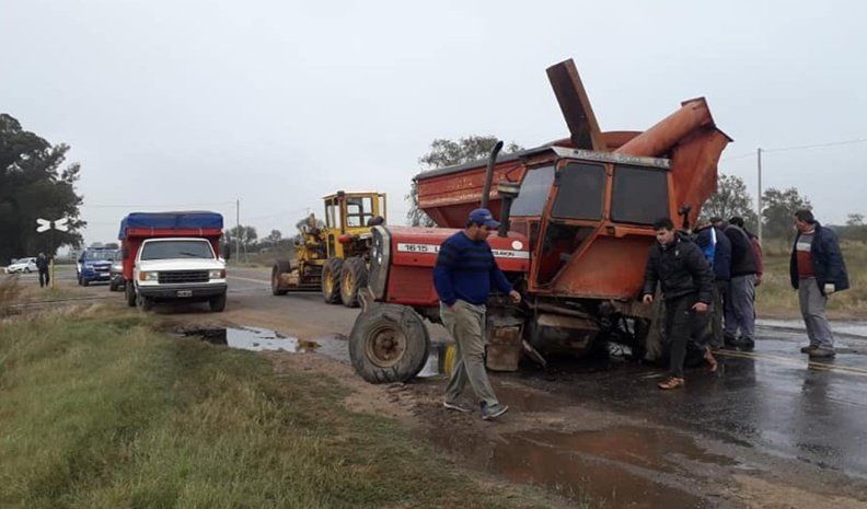 Por causas que son investigadas, un camión Mercedes Benz L1521/48 embistió contra un tractor Massey Ferguson 1615, al que le arrancó una de las ruedas traseras.