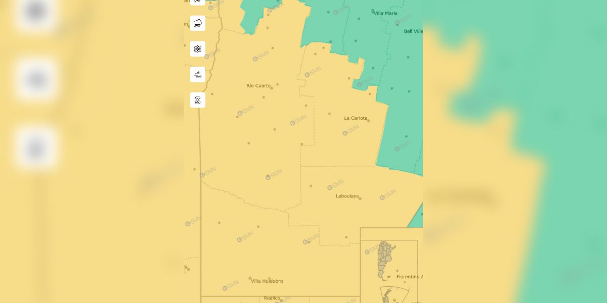 El Servicio Meteorológico Nacional emitió un alerta amarilla por vientos fuertes para todo el sur de Córdoba.