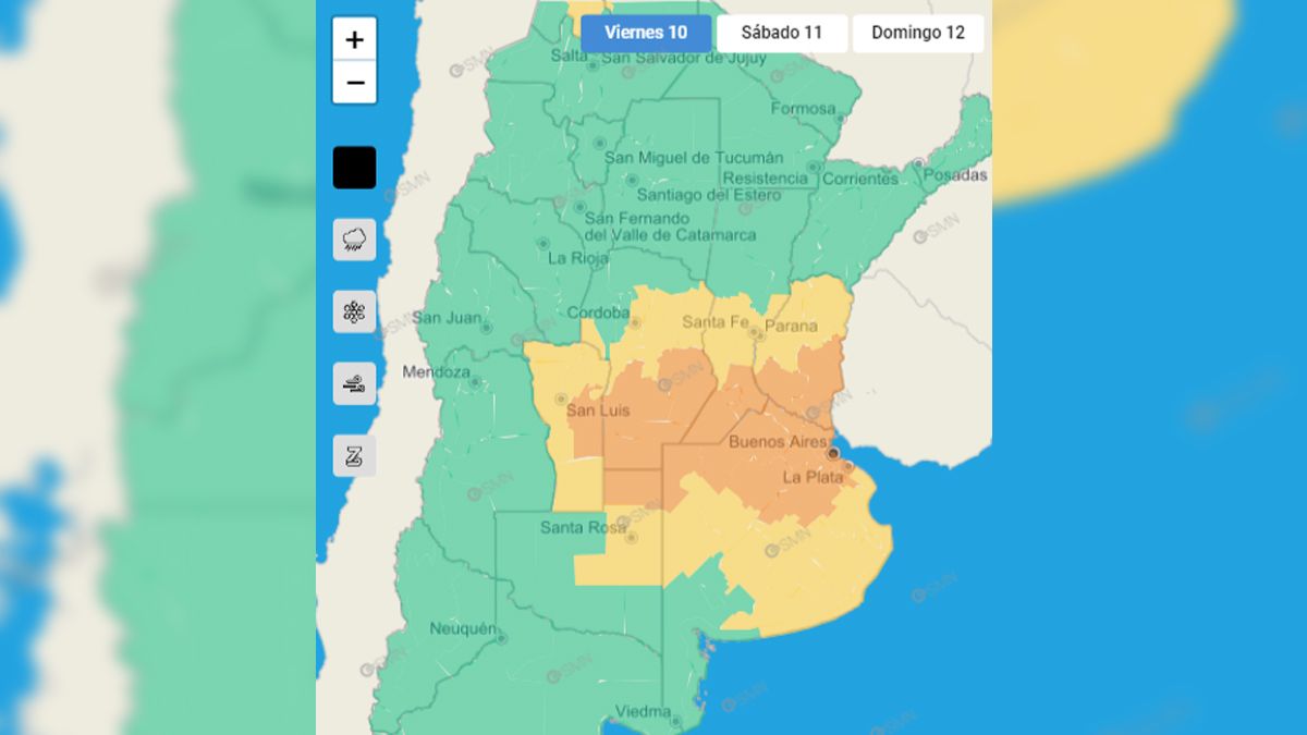 Continúa vigente el alerta naranja por tormentas emitido por el Servicio Meteorologico Nacional. El aviso abarca la ciudad de Río Cuarto, todo el Sur de Córdoba, y localidades de San Luis, Santa Fe, La Pampa, Buenos Aires y Entre Ríos