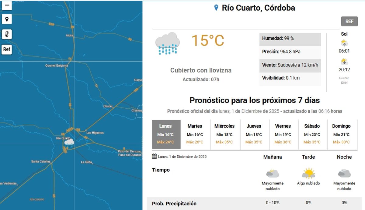 Tras las lluvias del fin de semana, el Servicio Meteorológico Nacional pronostica el fin de la inestabilidad en Río Cuarto y región.