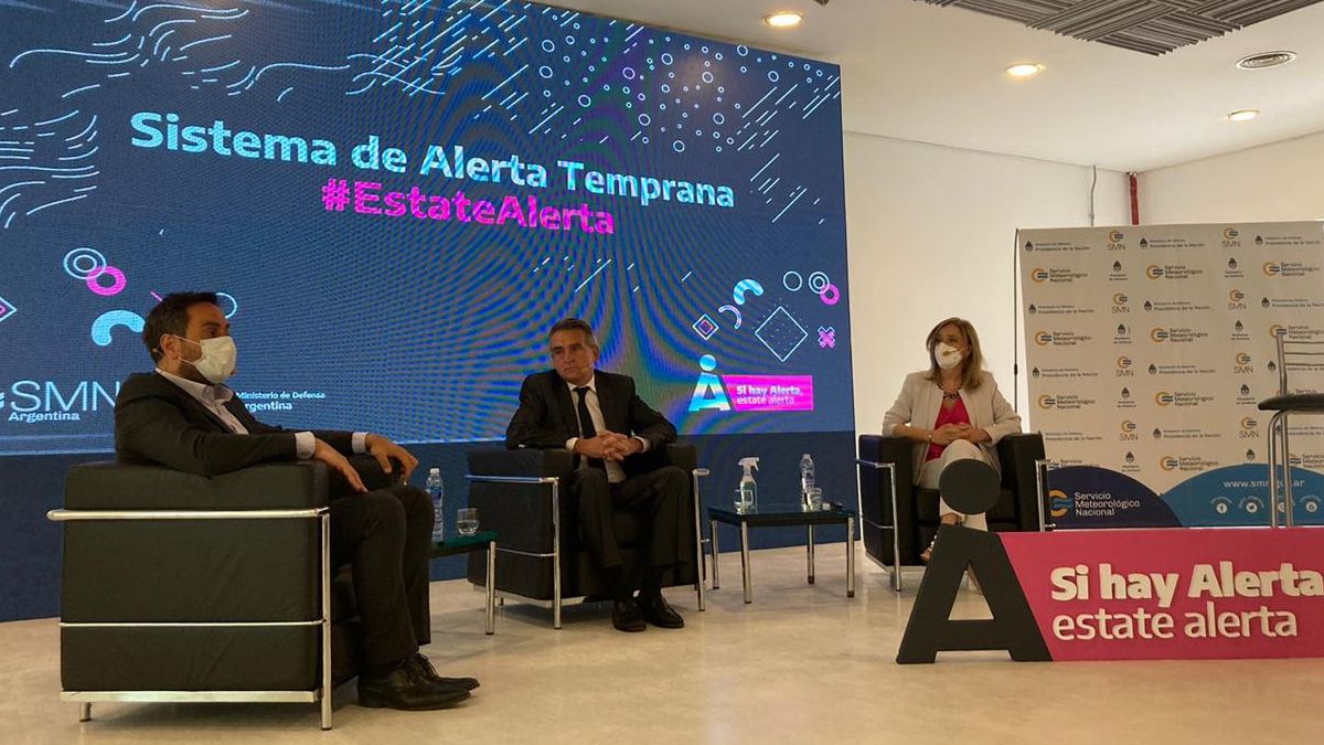 Saulo afirmó que, en el escenario de Cambio Climático, todo indica que los eventos extremos seguirán en aumento, y también sus impactos económicos y sociales, “por eso resulta urgente una mayor inversión en adaptación en todos los ámbitos, incluyendo la reducción de riesgos vinculados con el clima y el agua. Para esto, es prioritario mejorar el acceso a la información sobre los riesgos y fortalecer los Sistemas de Alerta Temprana Multiamenaza” agregó. Estuvo presente el Ministro de Ambiente y Desarrollo Sostenible, Juan Cabandié; entre otros funcionarios nacionales.