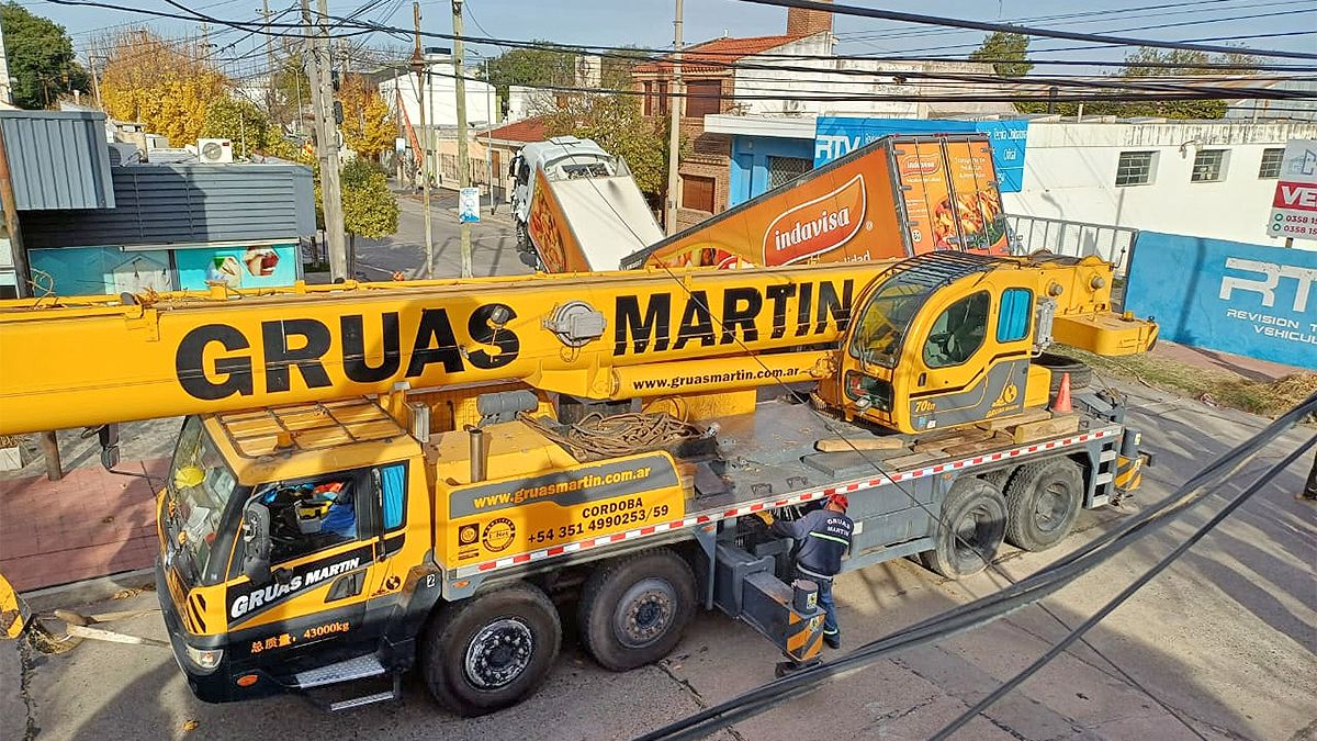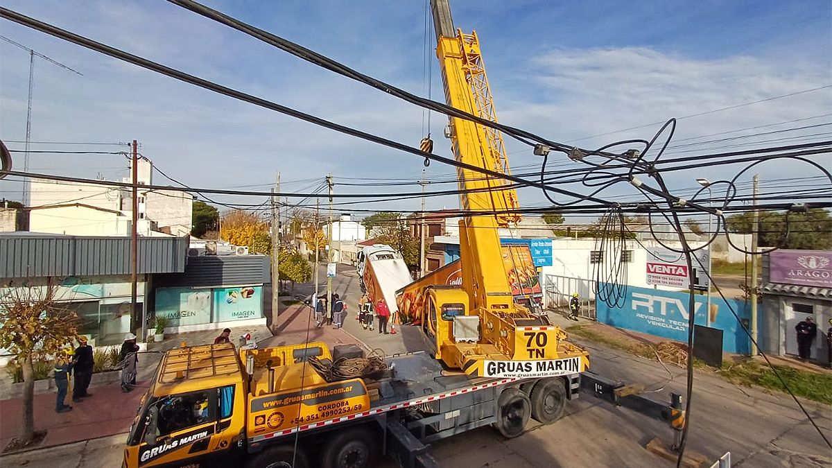 En el lugar, trabaja personal de Bomberos Voluntarios, efectivos de la Policía de Córdoba, el DUAR, trabajadores de la propia grúa, integrantes de Defensa Civil, personal del Ente de Prevención Urbana, Epec y Emos, entre otros.