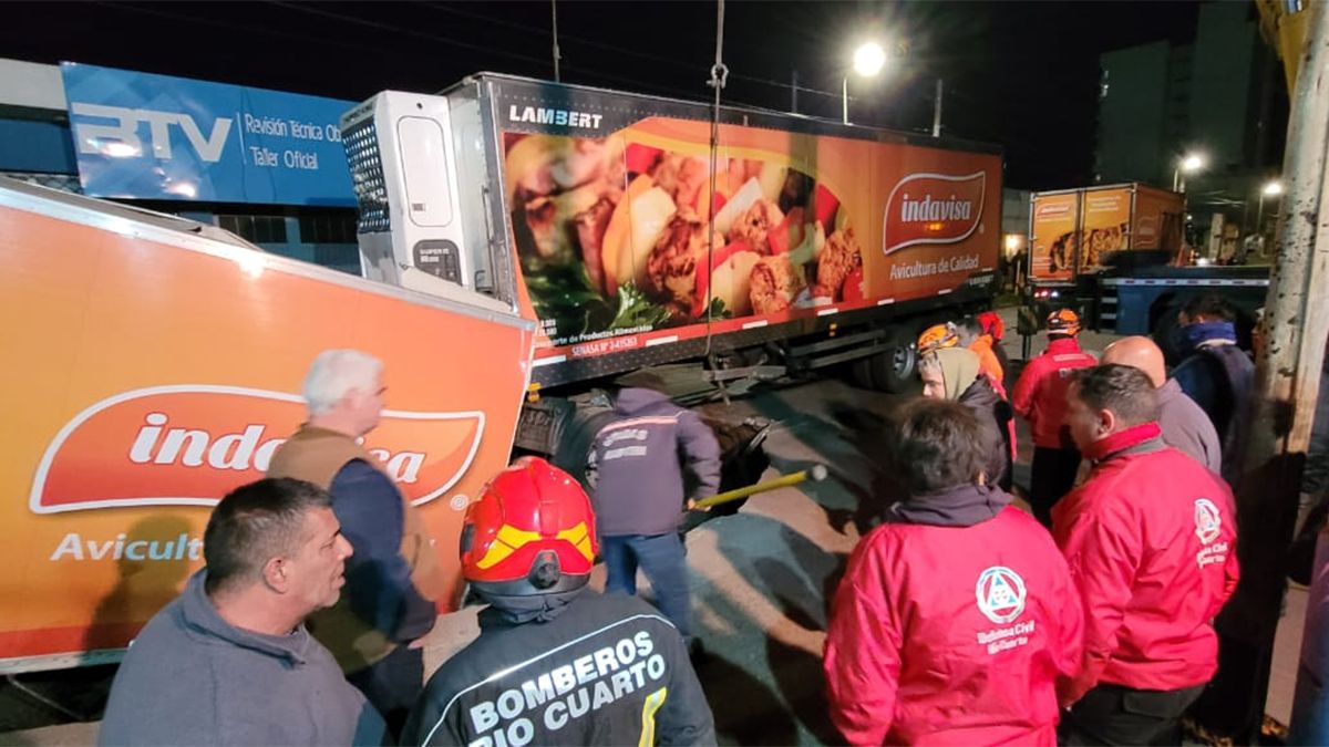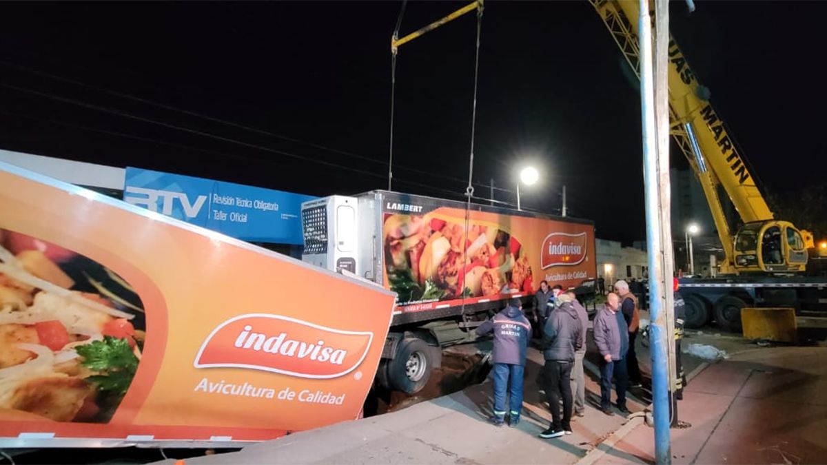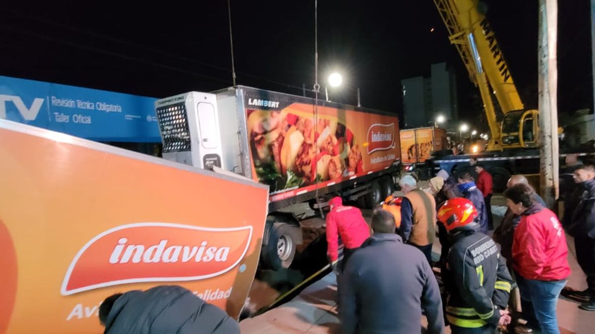 Alrededor de las 22 ya había sido retirado el acoplado del socavón y se aprestaban a realizar la misma tarea con el chásis.
