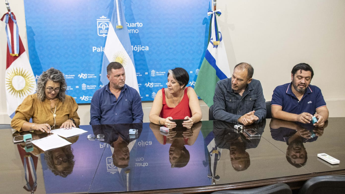 Firmaron el acuerdo el secretario de Gobierno, Roberto Koch, y la titular del SOUEM, Jorgelina Fernández, entre otros.