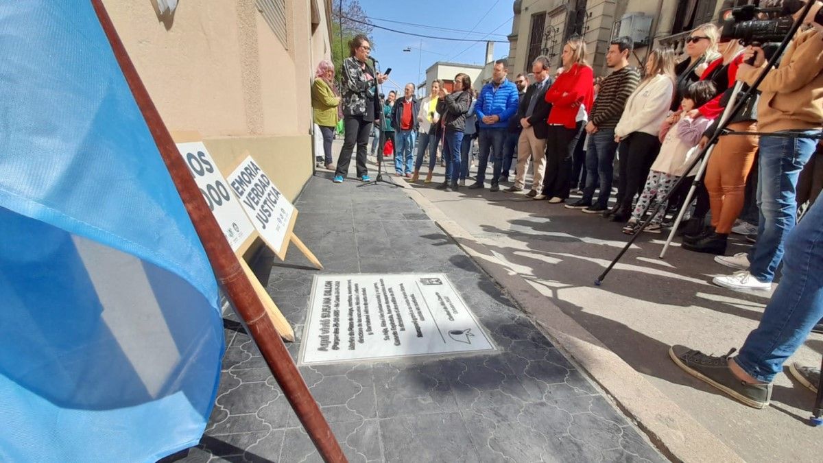 En el marco de un conmovedor homenaje, del que participaron autoridades municipales, representes de organismos de derechos humanos, amigos y familiares, se descubrió ayer una baldosa que evoca la figura y la lucha por los derechos humanos de la madre de Plaza de Mayo y escritora riocuartense, Susana Dillon, en la vereda que da al frente del departamento de la calle Moreno, donde ella vivió y crió a su nieta, María Victoria Dillon, más conocida como “Pepi” Dillon, apropiada por la dictadura militar y entregada de bebé a su abuela, en la puerta de ese mismo hogar.