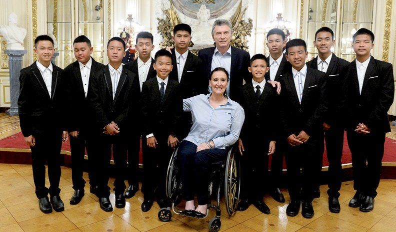 El presidente Mauricio Macri recibió hoy en Casa Rosada a los estudiantes tailandeses que habían quedado atrapados en una cueva en el país asiático, y que se encuentran en la Ciudad de Buenos Aires como invitados en los Juegos Olímpicos de la Juventud.